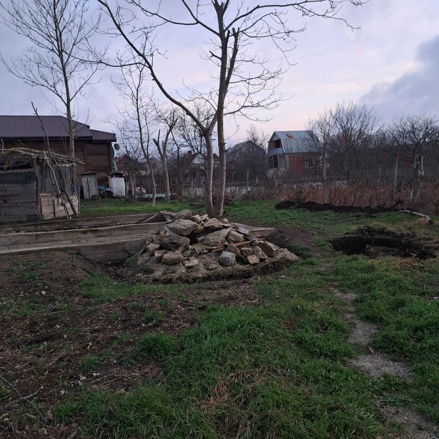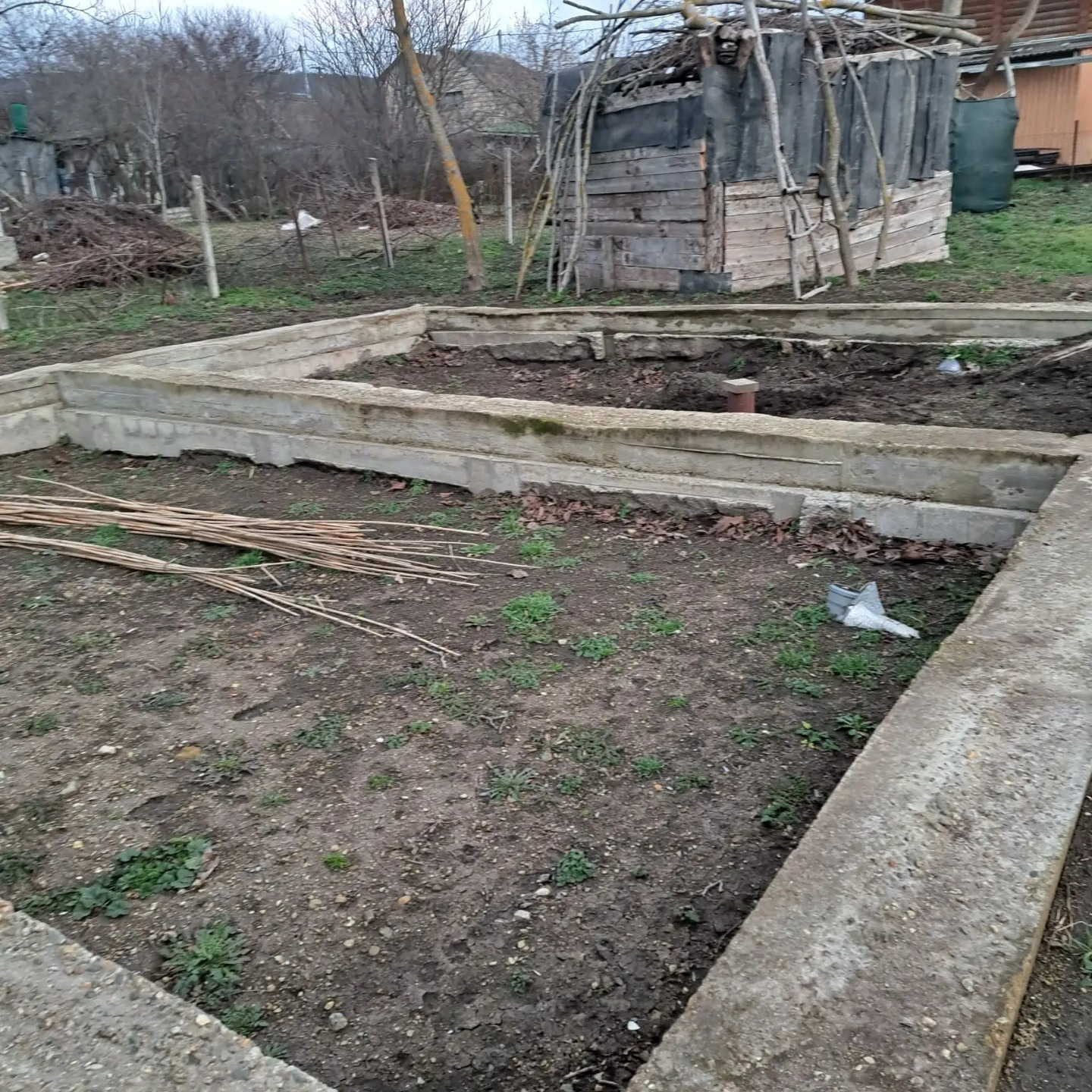 На участке свежий фундамент под дом размером 8 х 9. Отличный старт для строительства. Собственная скважина. Электричество - столб по меже.